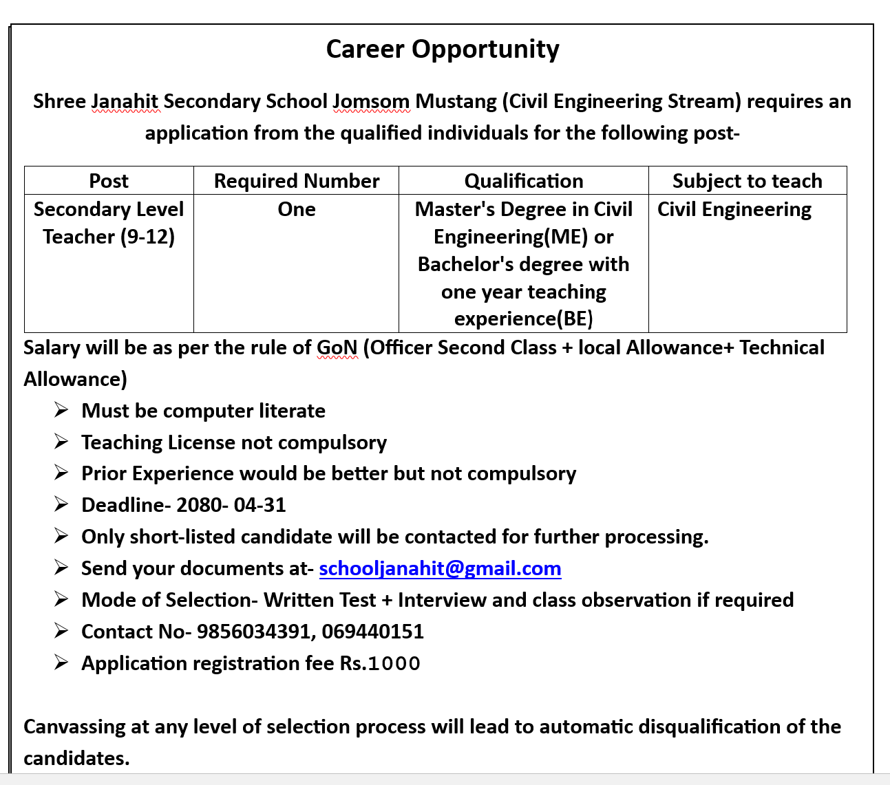 शिक्षक आवश्यकता